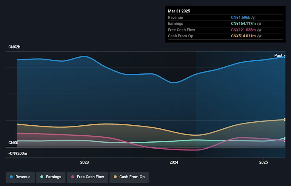 Yong Jie New Material Ltd. showcases a compelling profile with its recent financial performance. The company reported sales of CNY 7.02 billion for the first nine months of 2025, up from CNY 5.85 billion in the previous year, while net income rose to CNY 308.62 million from CNY 235.61 million, indicating robust growth in earnings per share to CNY 1.71 from last year’s CNY 1.6. Over five years, its debt-to-equity ratio impressively decreased from a staggering 643% to just over 1%, highlighting effective financial management and positioning it well within the competitive Metals and Mining industry landscape where it outpaced average earnings growth rates significantly at over three times the industry pace.