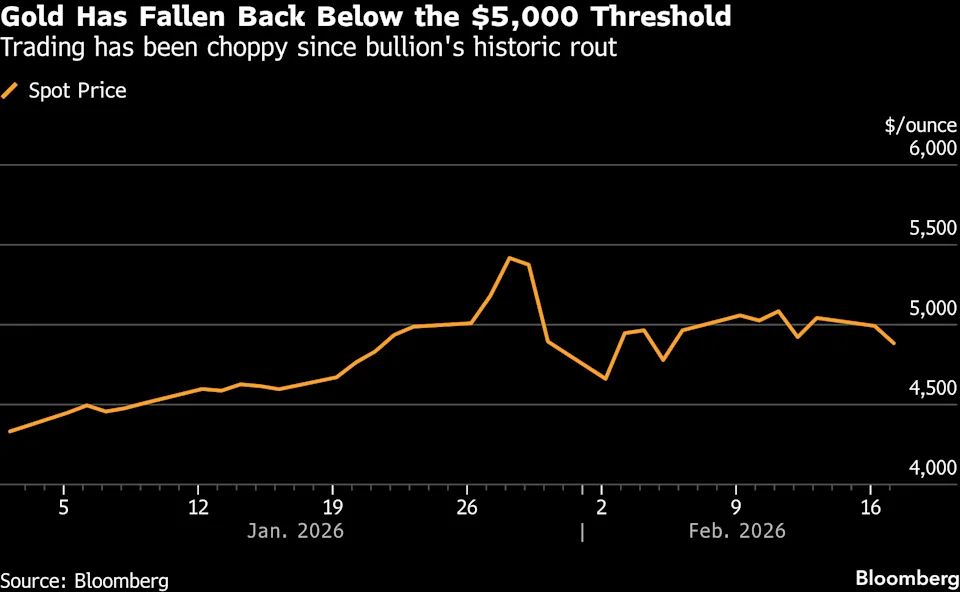 A wave of speculative buying pushed a multiyear rally to breaking point in late January. From a peak above $5,595 an ounce, bullion snapped back to near $4,400 in an abrupt, two-day rout at the turn of the month. Though it has since regained some losses, trading has remained choppy.